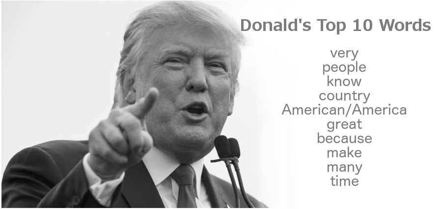 Considering that Trump's logo is: Make America Great Again, it's no surprise that most of those words are in the top ten words list.